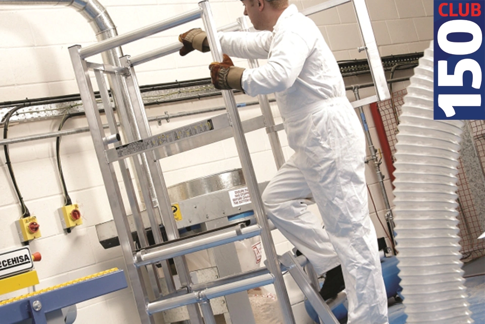 A folding, stabilised mobile access podium available to hire from GAP with slip-resistant front feet and guardrails to comply with Working at Height regulations. Comes with slip resistant feet to ensure that it cannot be moved when in use.