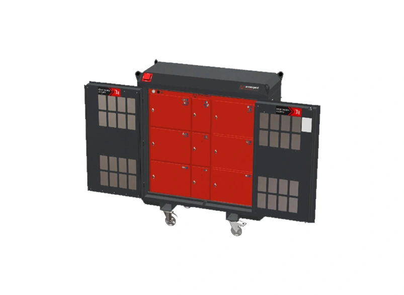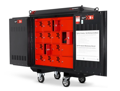 Designed specifically for large-format, high-capacity battery systems, the VH9 features nine individually lockable charging lockers, 18 RCD-protected sockets, and a robust 32-amp, 240V supply to support demanding on-site charging needs. Its advanced safety design includes segregated locker bays to prevent thermal propagation, a certified lithium-ion fire suppression system with an 18-litre reservoir, and a precision manifold system that targets suppression to the affected locker.