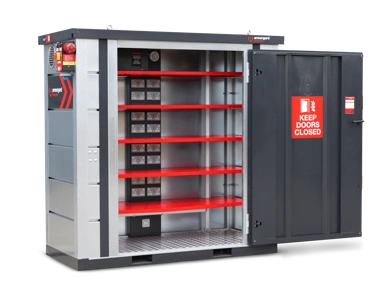 The Armorgard Volthub VH9 is a lithium-ion battery charging cabinet designed for maximum safety, reliability and fire protection in high-risk environments.