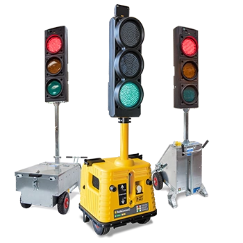 Compact and easily manoeuvred with solid wheels and trailers which are specifically designed to carry them. Generally used on longer running sites with separate compartments for batteries and the controller. Optional built-in battery charger with an external power input connection. Optics are the very latest LED low energy designs and are capable of automatic dimming and current monitoring.