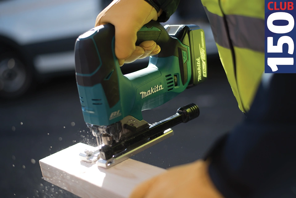 The Makita DJV182RMJ Cordless Jigsaw is powered by Makita's 18V LXT battery system, delivering up to 2,600 strokes per minute with a 26mm stroke length, ensuring smooth and efficient cuts through wood, metal, and plastic.