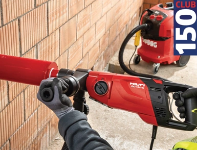 The Hilti DD 110-D Diamond Drill is designed for dry drilling in masonry up to 162mm in diameter, weighing just 5.3kg. Equipped with a two-speed gearbox delivering 740 rpm in gear 1 and 1,580 rpm in gear 2, this drill maintains optimal speed and torque across a range of core bit sizes.