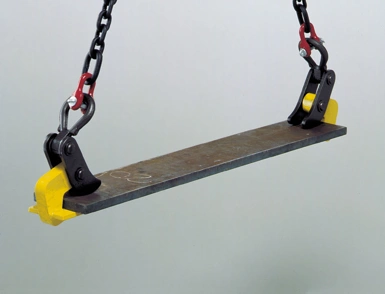 Horizontal Plate Clamps, used in pairs, are designed to transport both plate bundles and single plates up to 6 tonnes, with single plates having a minimum thickness of 5mm.