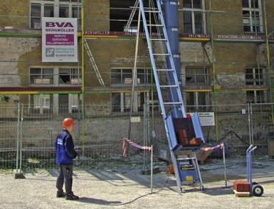 The lightweight 2-metre aluminium mast sections are designed for single-person assembly. A user-friendly loading and unloading ramp provides easy access to the platform, capable of transporting up to 300kg. At the landing level, the GEDA 300z car can swivel 90degrees, ensuring a secure transfer and hassle-free loading and unloading.