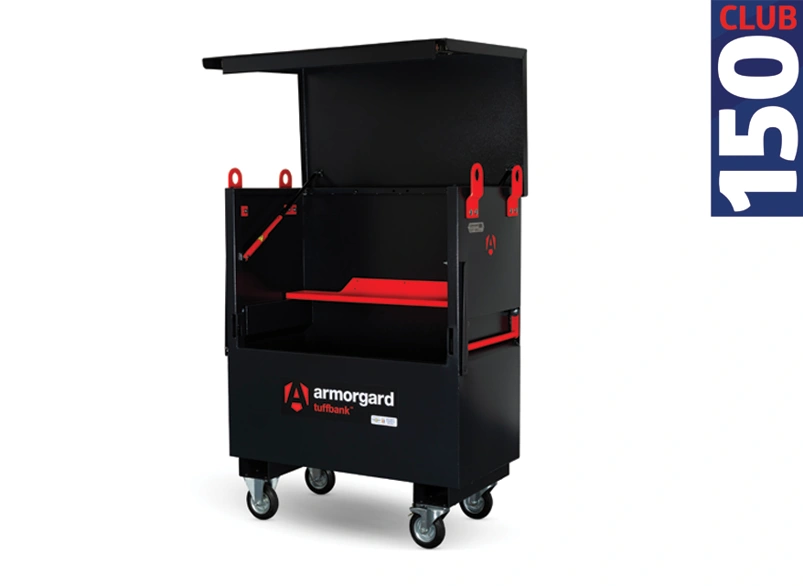 The Armorgard TuffBank TBC4 is a premium large site tool chest, designed to deter thieves, and provide safe protection and storage for expensive tools onsite. Built from 2mm and 3mm hard‑steel with welded anti‑jemmy systems and anti‑drill plates, it features twin robust 5‑lever deadlocks
